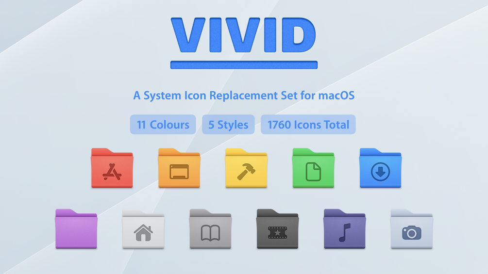 A total of 1760 icons split into 11 colours and 5 styles in both ICNS and ICO formats.